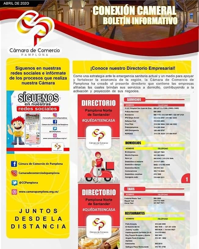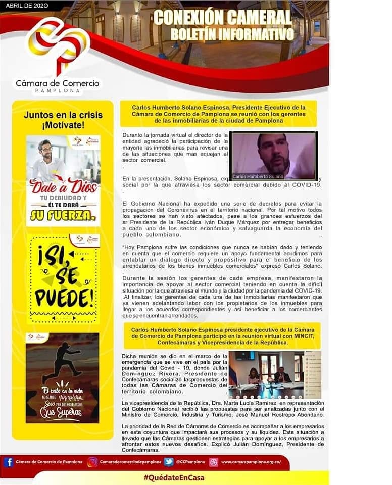 En esta ocasión se presenta la Gestión realizada por el Dr. Carlos Humberto Solano Espinosa, Presidente Ejecutivo de la Cámara de Comercio de Pamplona ante los entes municipales, departamentales y nacionales.